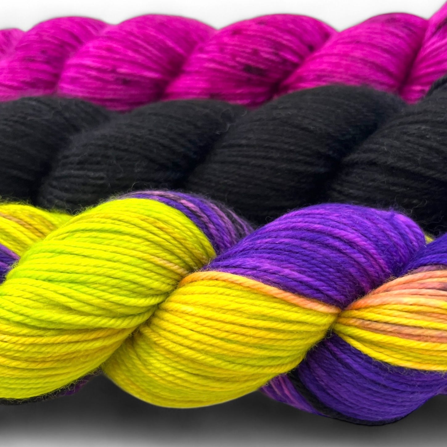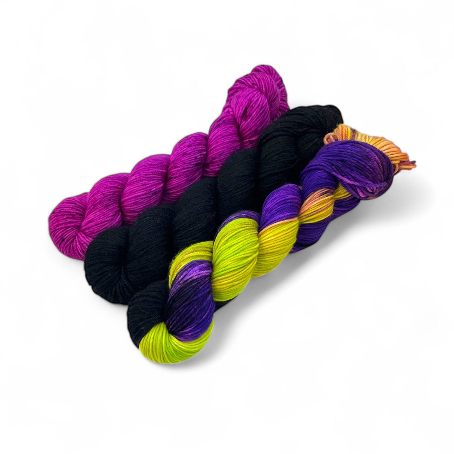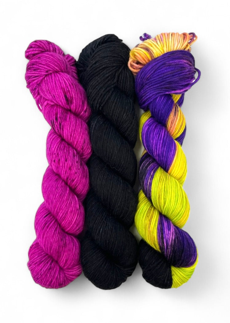 Today's Feature is the perfect trio for spooky season! This fun and witchy set on Homer totals 693 yards, and would be perfect for your next colorwork project! (We've included some pattern suggestions below if you need some inspiration!)