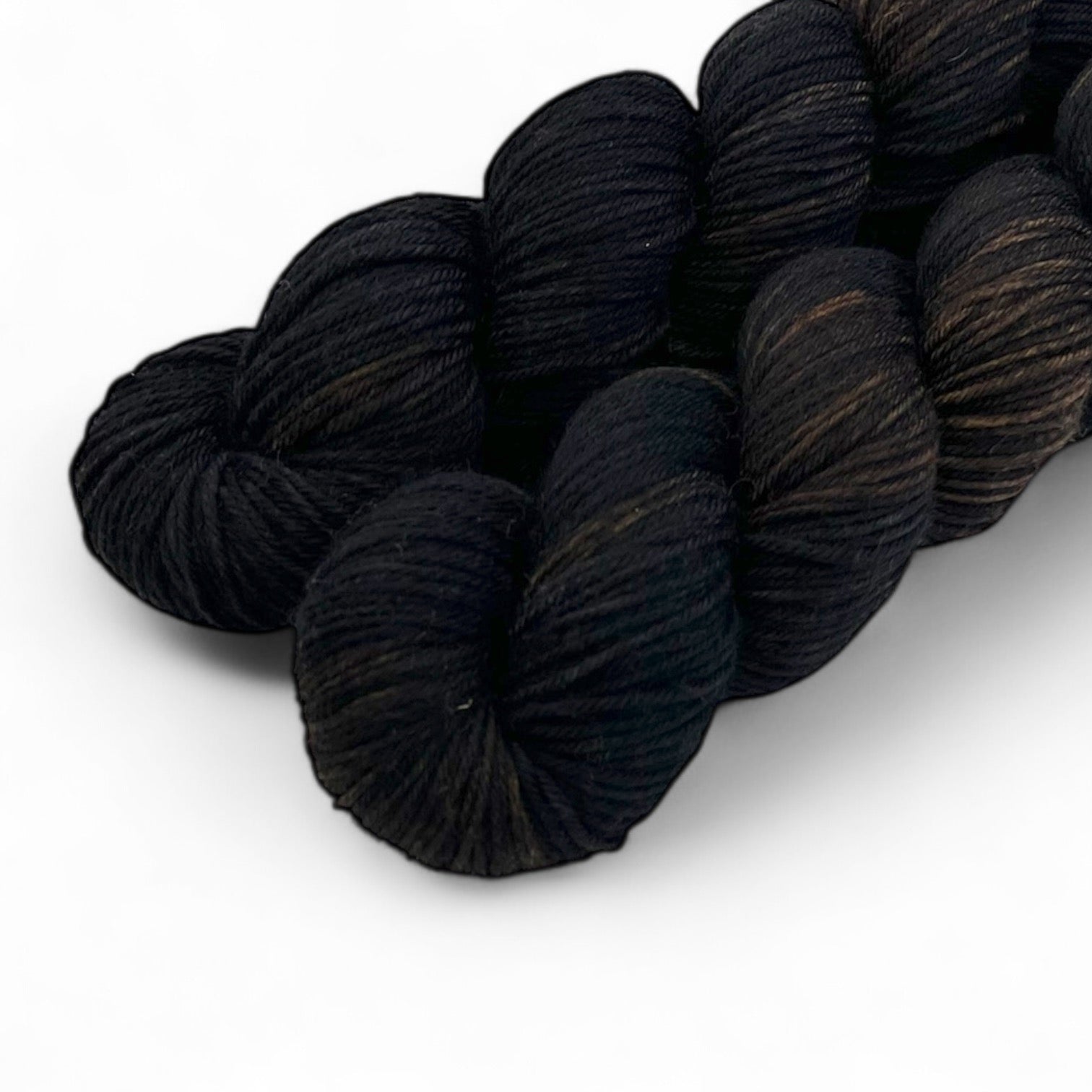 As hand-dyed yarn is subject to variation, even with the same dye lot, if using more than one hank in a project, alternate hanks every few rows to compensate for variations in tone and pattern.