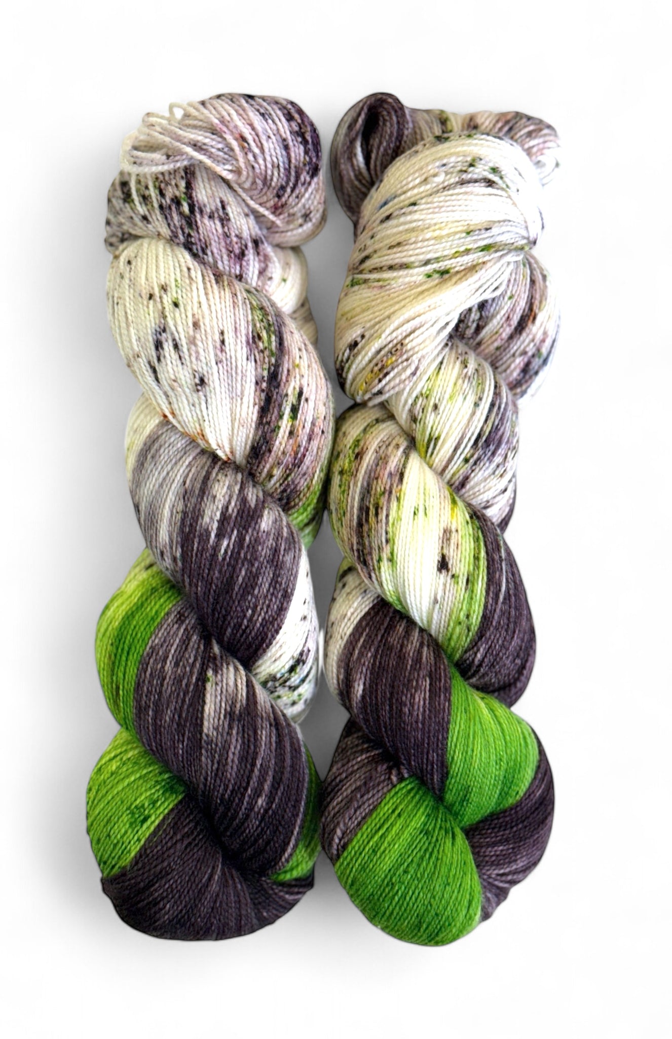 As hand-dyed yarn is subject to variation, even with the same dye lot, if using more than one hank in a project, alternate hanks every few rows to compensate for variations in tone and pattern.