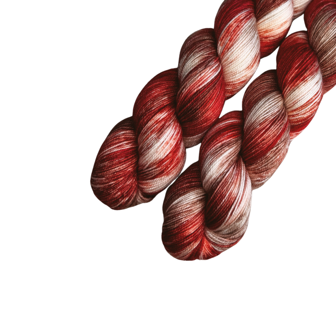 As hand-dyed yarn is subject to variation, even with the same dye lot, if using more than one hank in a project, alternate hanks every few rows to compensate for variations in tone and pattern.